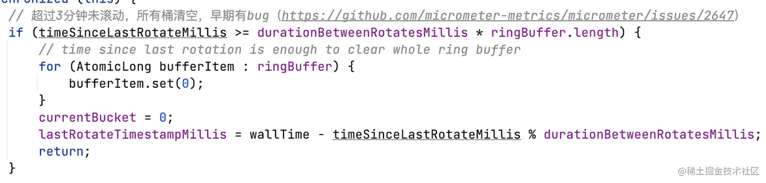 如果在一个时间窗口(1分钟)内不来采集,那么就不会调用累积Histogram方法,那么这个时间窗口的数据就会随着底层环形数组滚动而丢失。