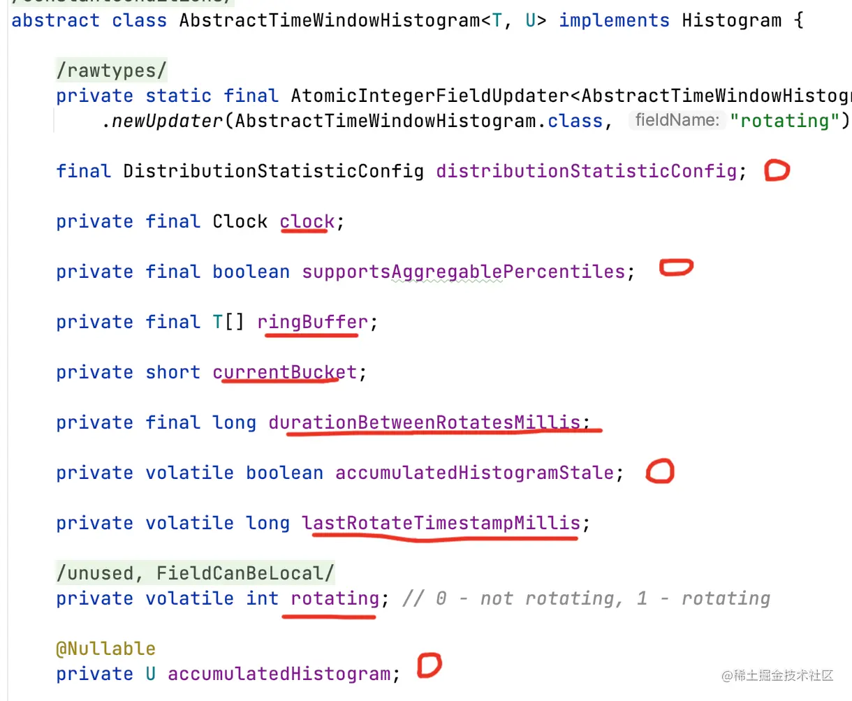 只不过数组元素是泛型T,即AbstractTimeWindowHistogram可以理解为存储了x个时间窗口内的T。