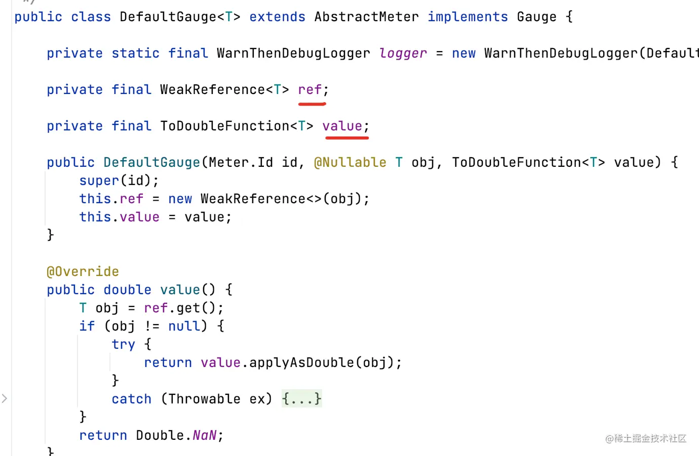 - value:一个Function函数,获取double类型度量,不像Counter一般自己就能维护一个计数器;