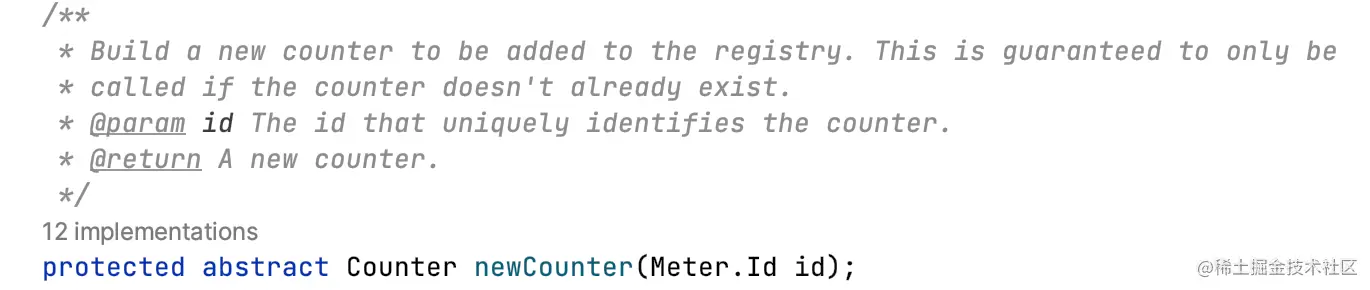 为此,子类需要实现一些构建Meter的方法,比如构建一个Counter。