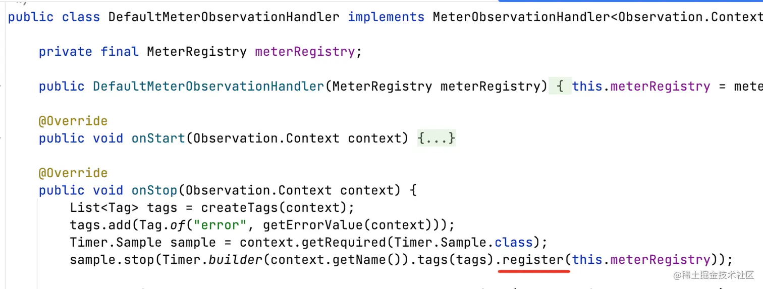 为了减少内存和cpu的浪费,不必在运行时去注册Meter到MeterRegistry,虽然MeterRegistry#getOrCreateMeter支持判断同一个Meter仅注册一次。