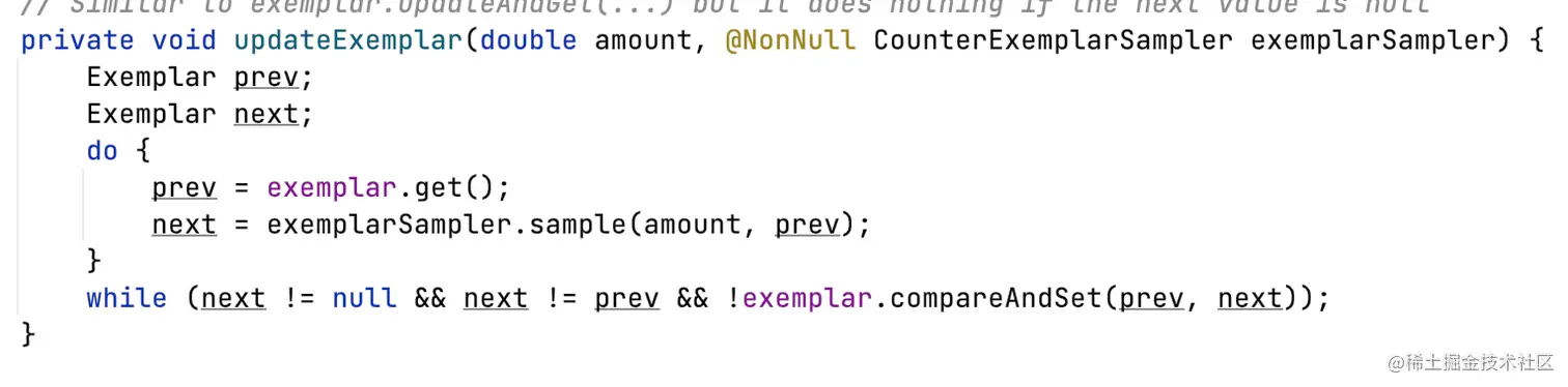 每次更新计数器,还会更新Exemplar。