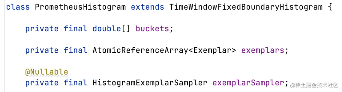 特点在于PrometheusHistogram支持记录每个bucket对应的Exemplar。