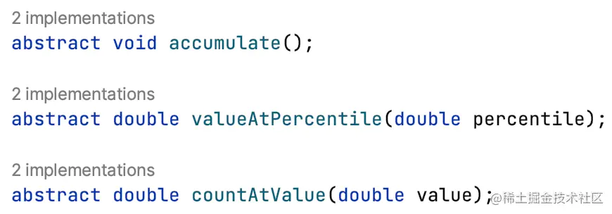 子类需要实现三个抽象方法用于获取HistogramSnapshot: