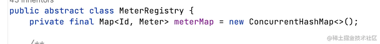 - MeterRegistry:存储Meter的地方,getOrCreateMeter方法控制同一个Id的Meter只注册一个Meter实例;