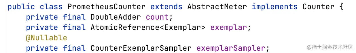 PrometheusCounter除了一个DoubleAddr计数器之外,还有一个Exemplar。