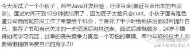 现在就这光景,不比以前,会个CRUD就有人要,即使大部分公司依然只需要做CRUD的事情......现在去面试,只会CRUD还要被吐槽: