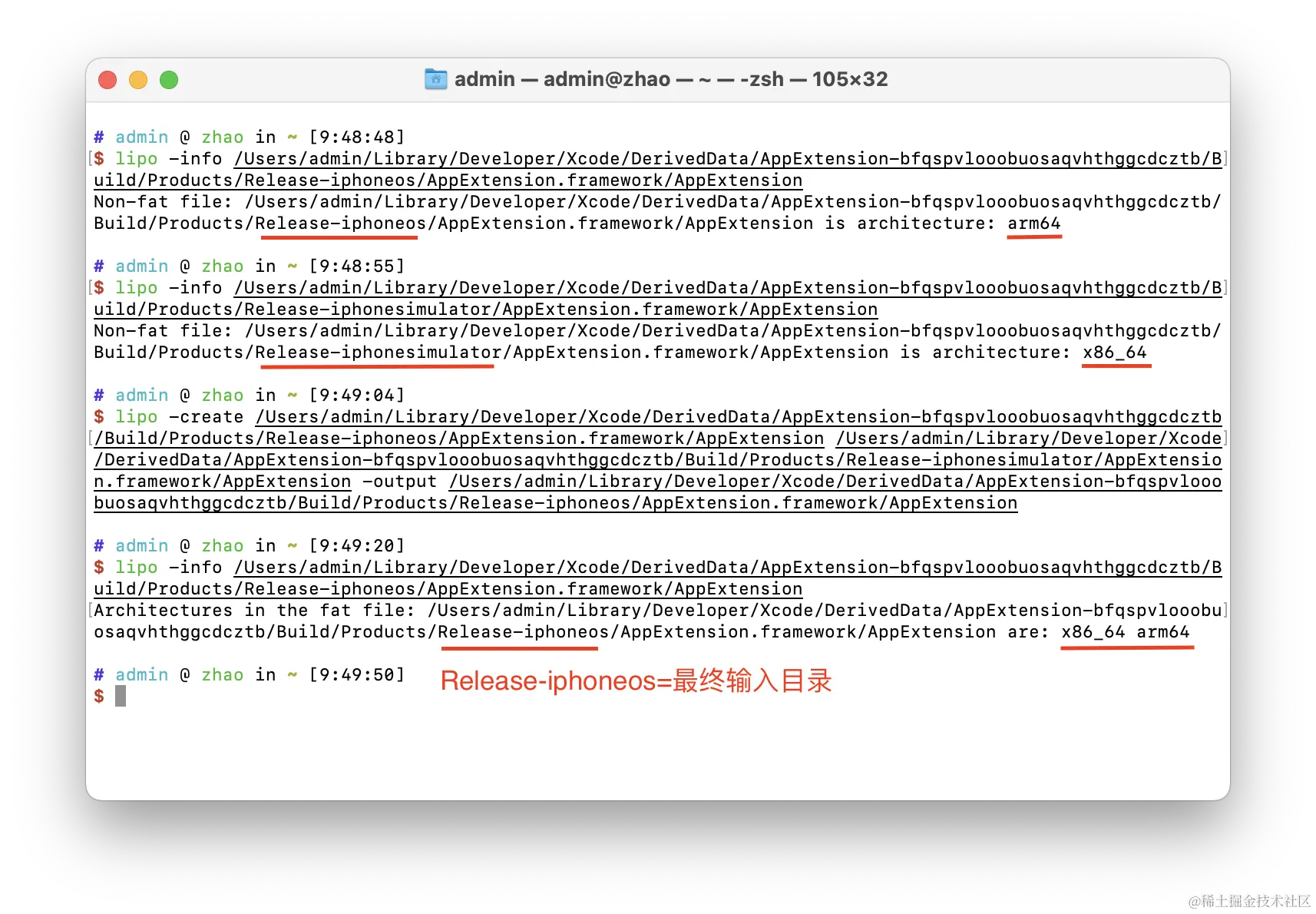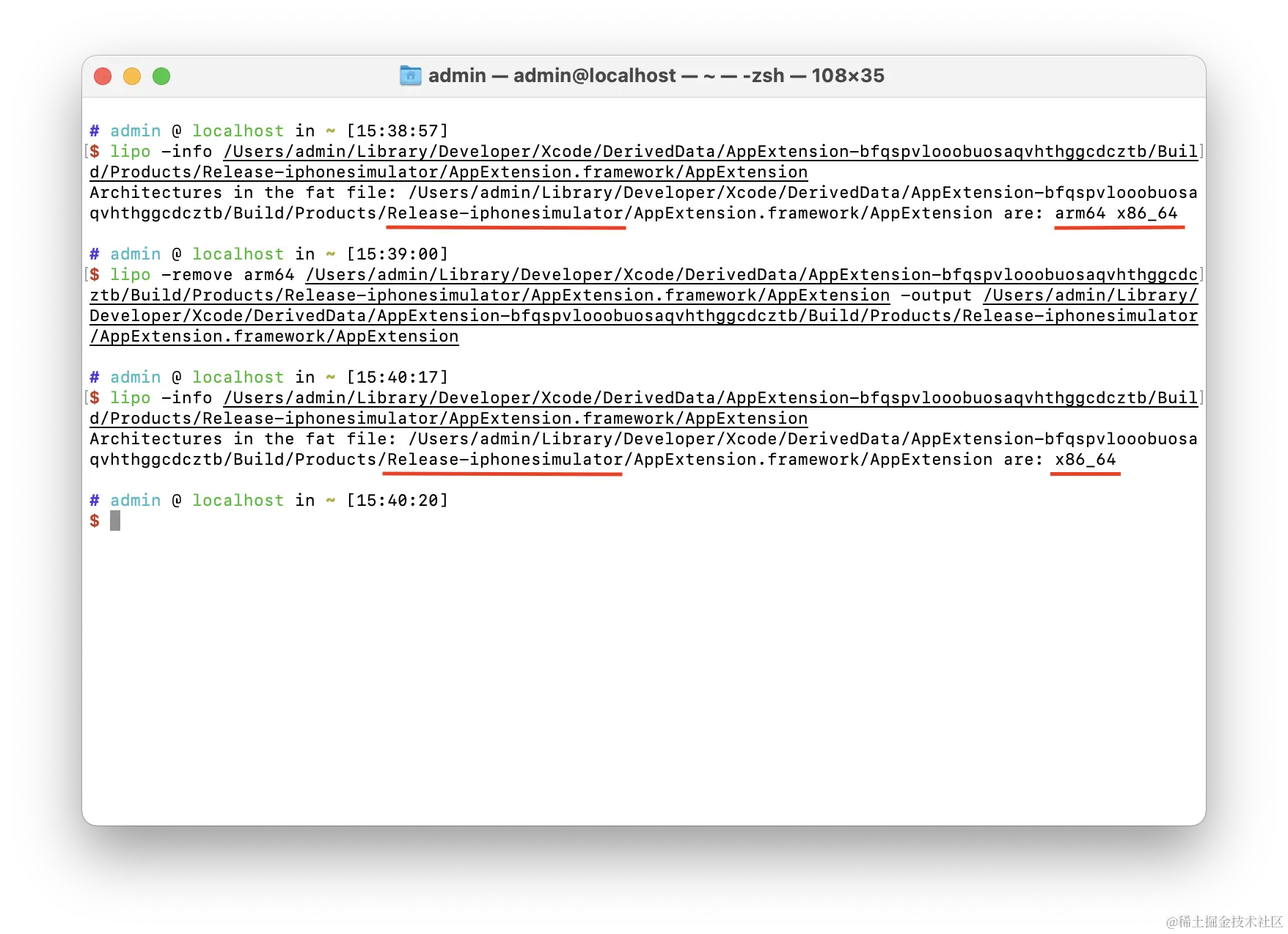 3. 移除模拟器中生成的arm64架构,也可以使用lipo -remove命令手动移除