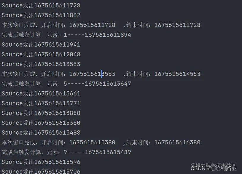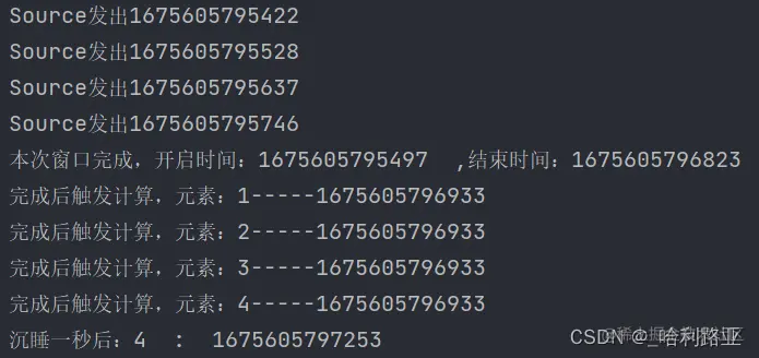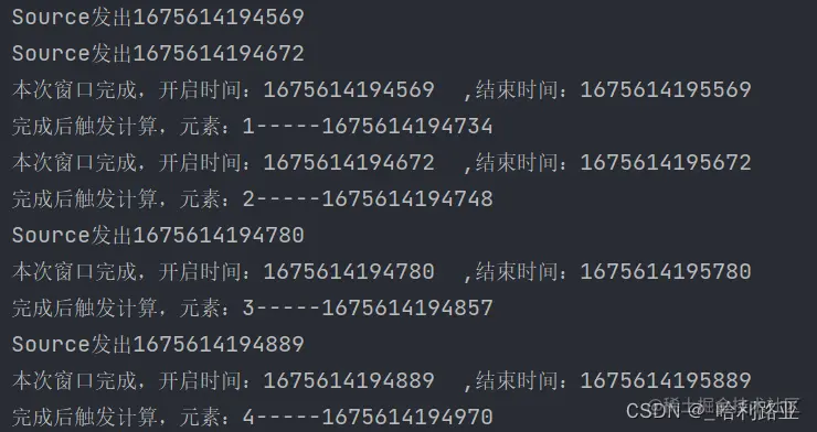 可以看出,窗口开启时间是元素发出的eventTime,窗口结束时间也是元素发出的1s后时间,2472-1472 = 1000