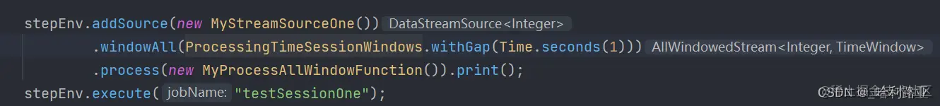 - 使用processingTime会话窗口且不重写水印函数动态获取的时间,此时eventTime和processTime没有区别,窗口只能用数据到达的窗口算子的时间作为窗口开启时间。