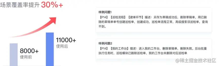 应用效果:场景测试覆盖提升30%,新发现30+深层业务逻辑问题,样例如下: