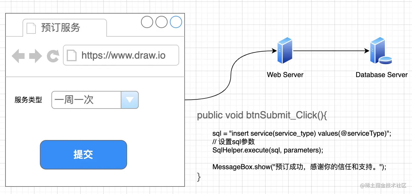 在企业软件开发领域,有很多技术栈可以选择,比如微软技术栈有WindowsForms、Silverlight、WPF、ASP.NET WebForms/MVC/Blazor, 在学生时代,我们都是在事件处理器(EventHandler)中将界面上的数据拼接到sql模板中,然后将sql传递给数据库来执行。