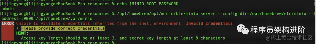 但通过实际验证,在mac下我们修改了 ~/.bashrc,但重新启动minio后发现并没有生效。