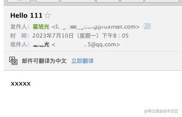 这样我们就用 node 发送了第一个邮件!