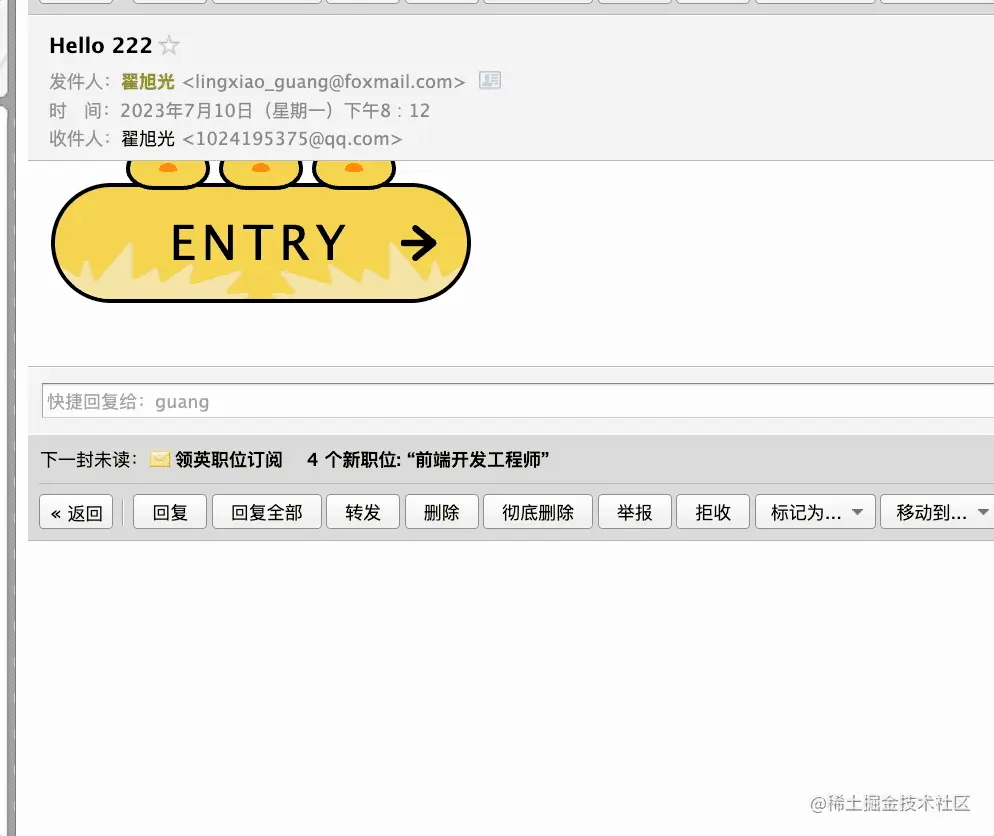 我们通过 nodemailer 发送了 html 的邮件,可以发送任何 html+css 的内容。
