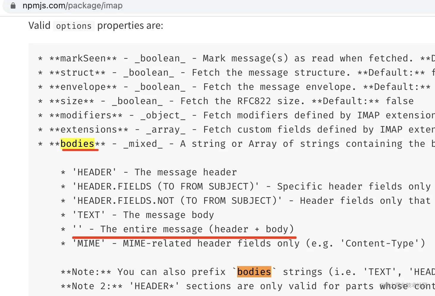 这里用 imap.fetch 来请求这些 id 的内容,bodies 为 '' 是查询 header + body 的意思:
