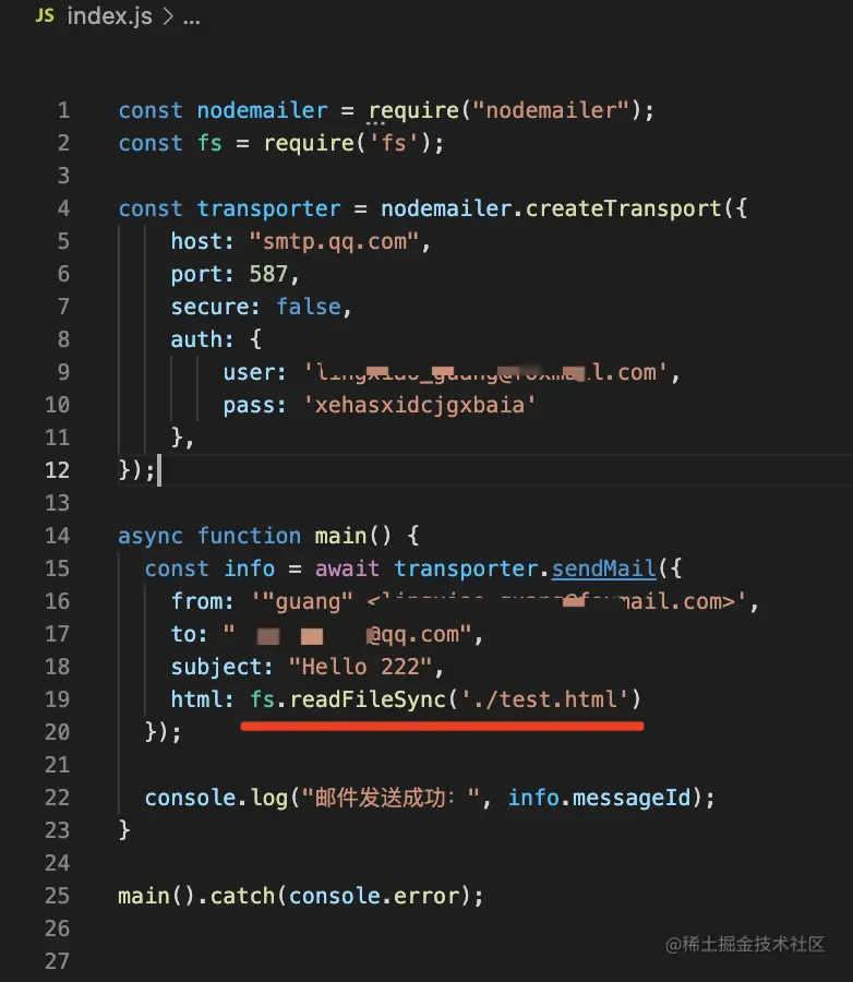 安装 nodemailer 包,然后执行上面的代码: