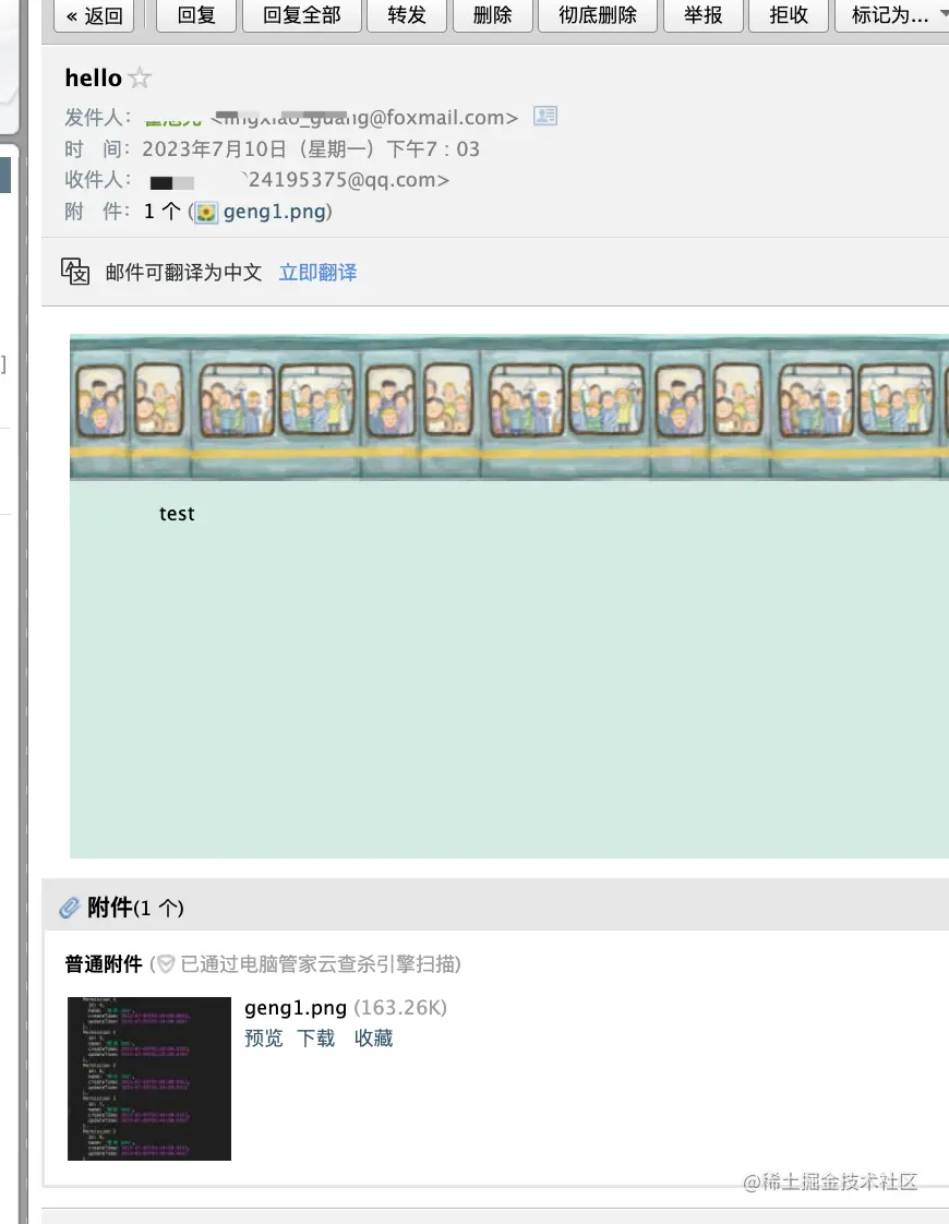 邮件内容和附件内容都保存了下来: