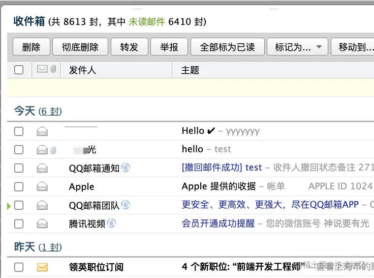 在邮箱里可以看到也是这些邮件: