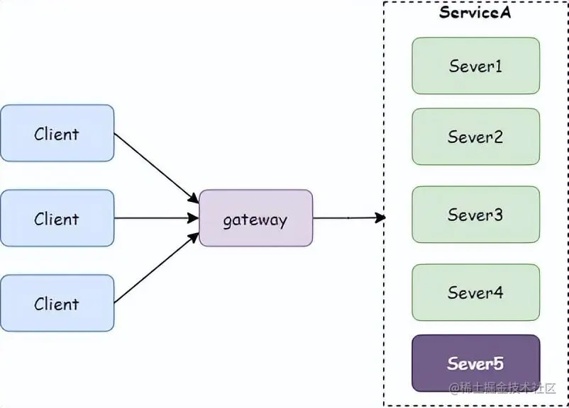 如上图,对 ServiceA 这个服务进行升级,采用灰度发布,先升级 Server5,一周后如果没有问题,升级 Server4 和 Server 3,再运行一周没有问题,把剩下两个节点都升级。