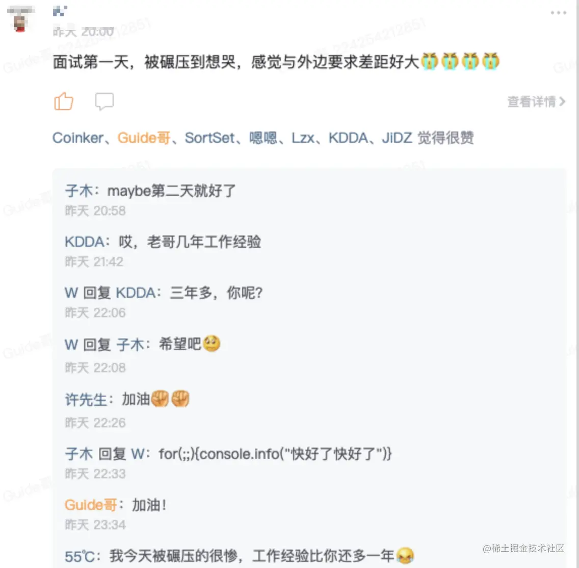 还在星球看到一些朋友抱怨面试太难,自己有点无力的感觉。