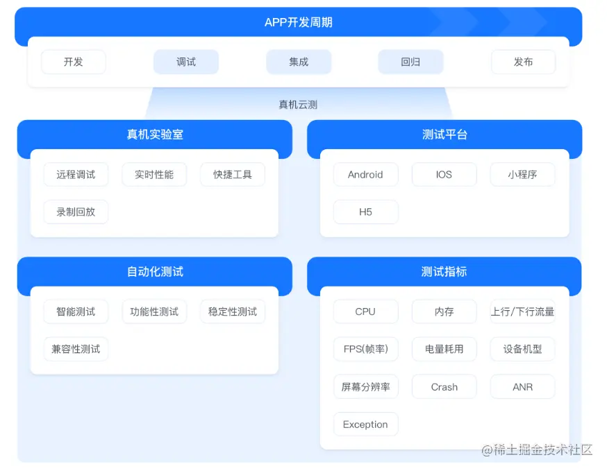 - 端测自动化:海量设备支持兼容性、稳定性、性能、功能测试等