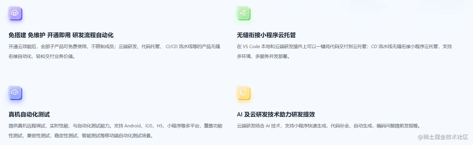 - 交付自动化:代码提交后1小时内即可安全交付云托管
