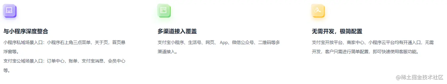 - 支持全渠道覆盖:支付宝小程序、支付宝生活号、APP(iOS/Android)、Web、H5、微信公众号、微信小程序、二维码等均可接入