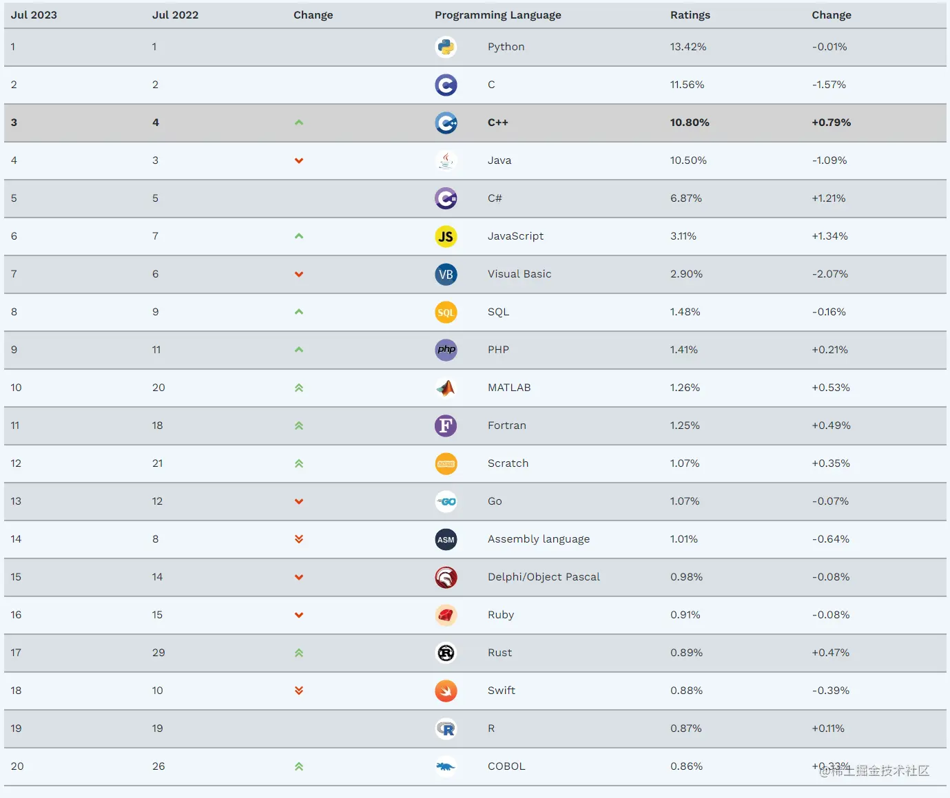 TIOBE 公布了 2023 年 7 月的编程语言排行榜。