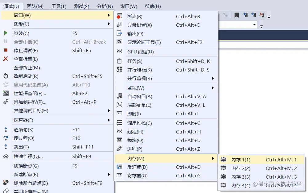 七、VS的内存窗口