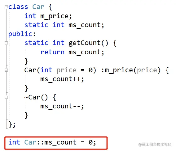 - 必须初始化,必须在类外面初始化,初始化时不能带static,如果类的声明和实现分离(在实现.cpp中初始化)