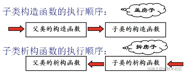 - 构造函数和析构函数用来处理对象的创建和析构操作,构造和析构函数只知道对它们的特定层次的对象做什么,也就是说构造函数和析构函数不能被继承,必须为每一个特定的派生类分别创建