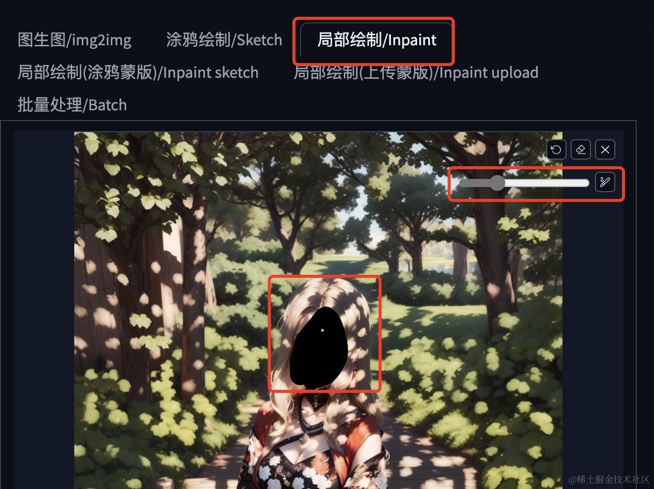 - 修正不和谐的画面元素,比如人脸上的斑块。这可以通过图生图局部绘制来实现。