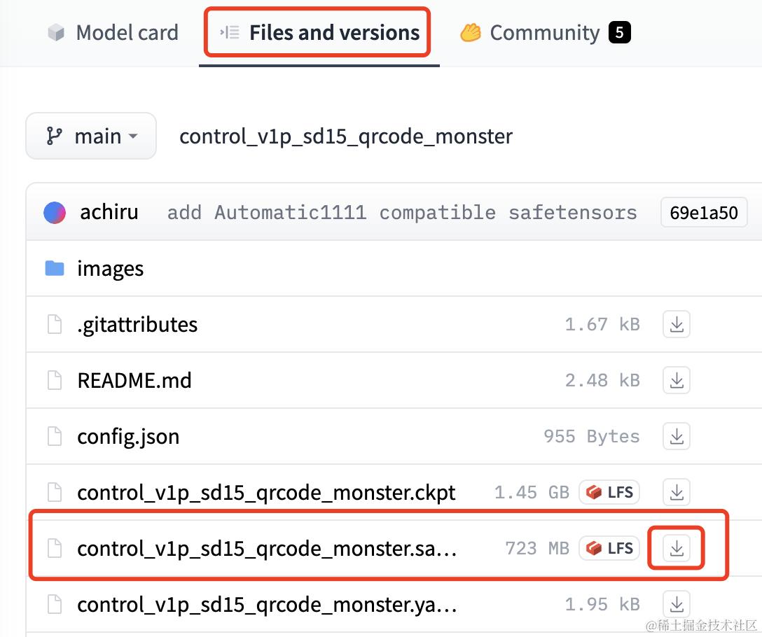 (1)这里下载以 .safetensors 为后缀名的文件,下载后放到 SD WebUI 的 models/controlnet 目录下。