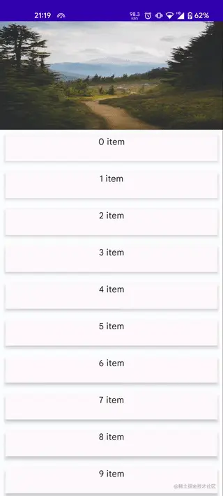 虽然 Android 提供了 CollapsingToolbarLayout,但是 Compose 并没有这个组件,好在 Compose 实现起来并不困难,借助 Compose 嵌套滚动的 Api 可以轻易实现,先看下效果图。