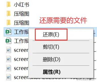 (1)先确认文件是否还在回收站中,如果在回收站中,右键单击 【还原】。
