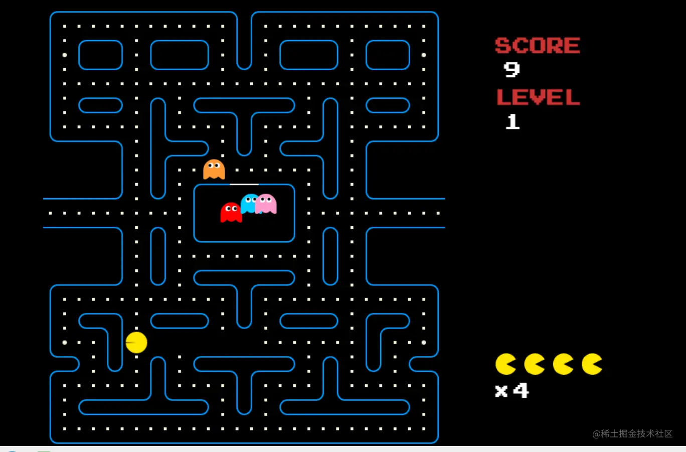 比如这款游戏,基于HTML5的吃豆人游戏(本游戏由 passer-by.com 制作),你可以在这里玩到:passer-by.com/pacman/