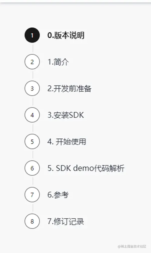 左侧导航栏也挺方便清晰的,从示例的简介到使用,一步一步教我们怎么去应用这段示例代码。想往回看的话也可以点击导航栏直接跳转到想要的章节。