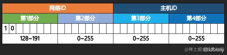 192.168 代表网络ID,后面两部分位代表主机ID。