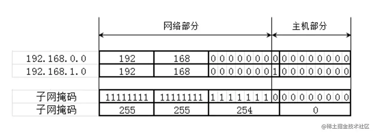 = 1100 0000.1010 1000.0000 0000.0000 0000 -> 192.168.0.0(10进制)