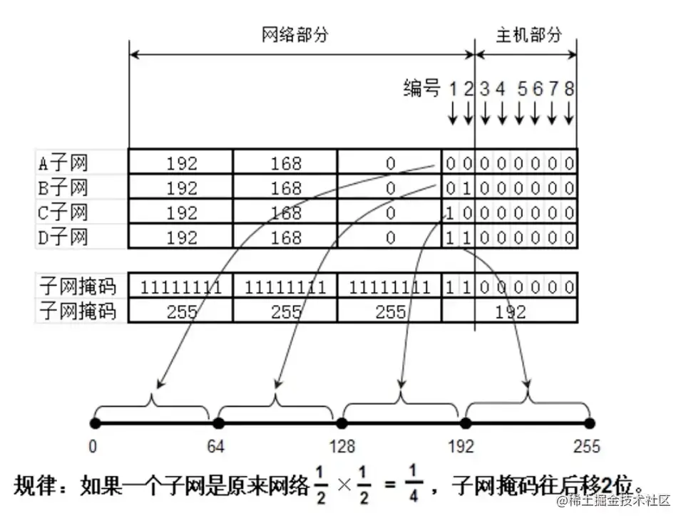 通过子网掩码(subnet mask)可以计算出网络ID:IP地址 & 子网掩码