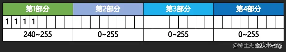 - 第一个网段的网络号以二进制00结尾,那么由它开始连续的4个网段,能通过左移2位子网掩码进行合并