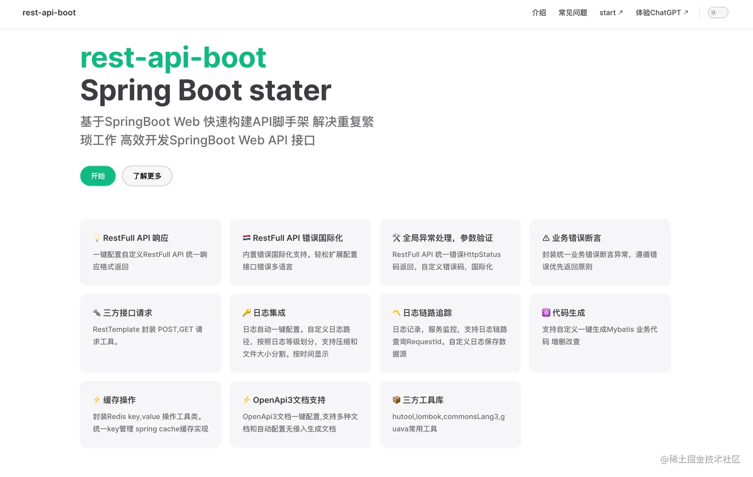 rest-api-spring-boot-starter 适用于SpringBoot Web API 快速构建让开发人员快速构建统一规范的业务RestFull API 不在去关心一些繁琐。重复工作,而是把重点聚焦到业务。