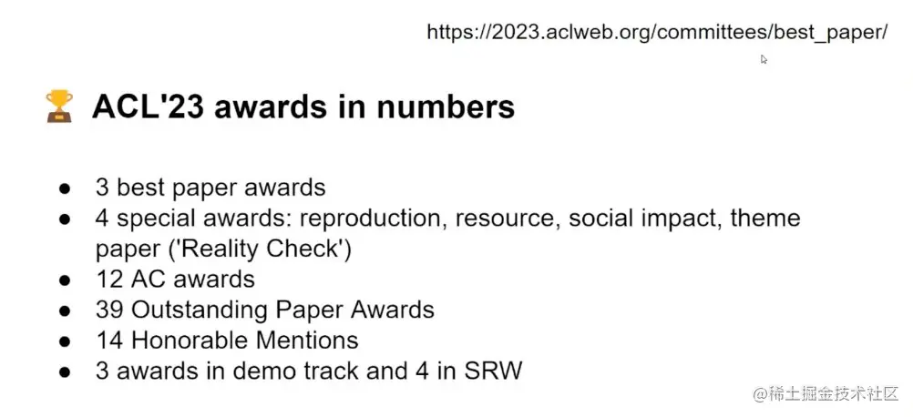 今年共评选出 3 篇最佳论文,4 个特别奖项论文:资源奖(Resource Award)、社会影响奖(Social Impact Award)、复现奖(Reproduction Award)、主题论文奖以及 39 篇杰出论文。