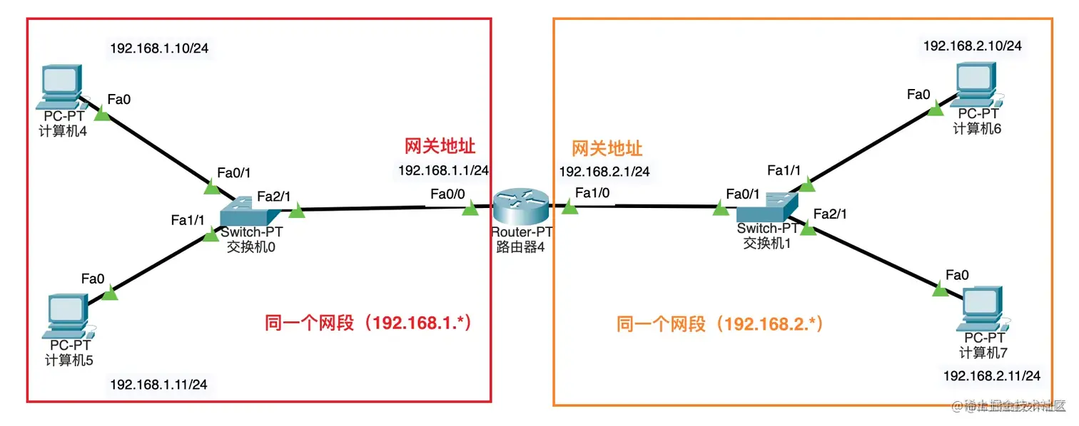 路由器是解决不同网段之间通信的,不要试图在同一个网段使用路由器(应该使用交换机)。