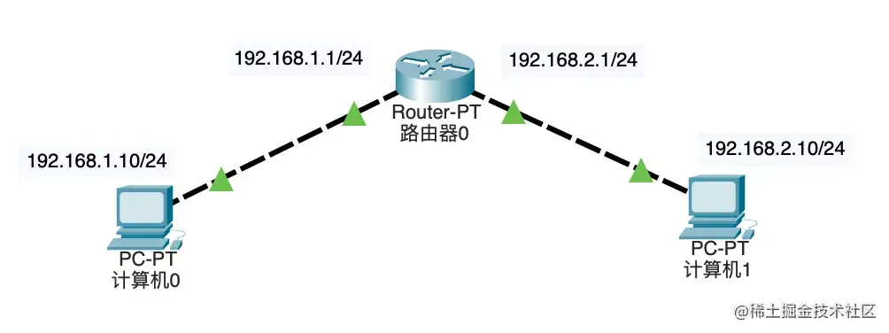 交换机0和交换机1处于不同的网段,要想让不同网段之间通信,就需要在两个交换机之间增加一个路由器。
