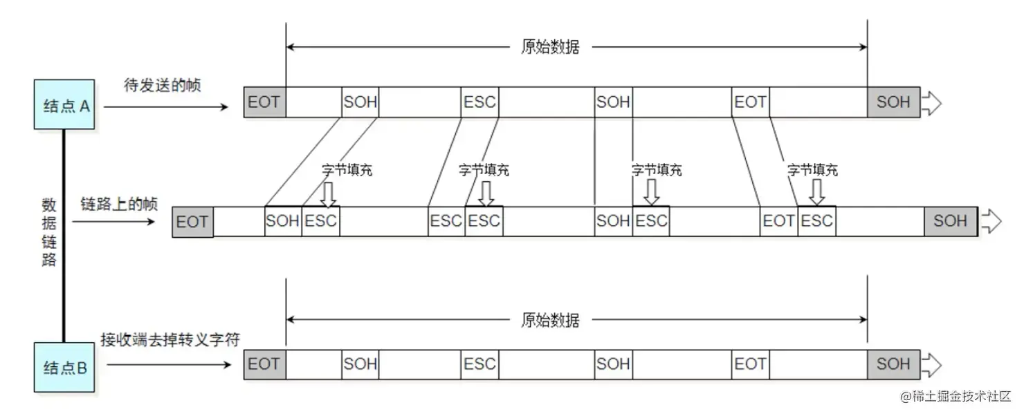数据部分一旦出现了SOH、EOT,就需要进行转义。