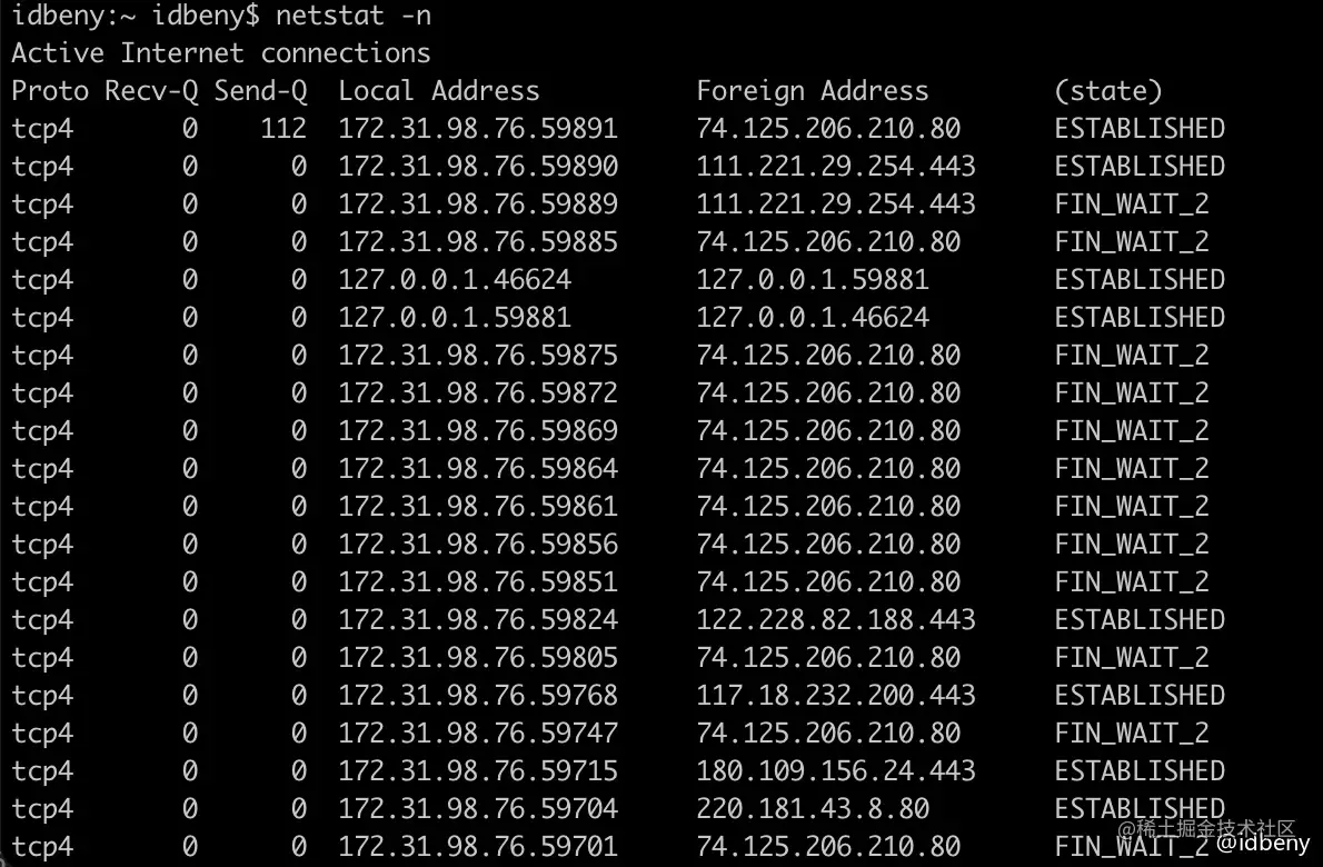 由于有些状态的时间比较短暂,所以很难用netstat命令看到,比如SYN-RCVD、FIN-WAIT等。