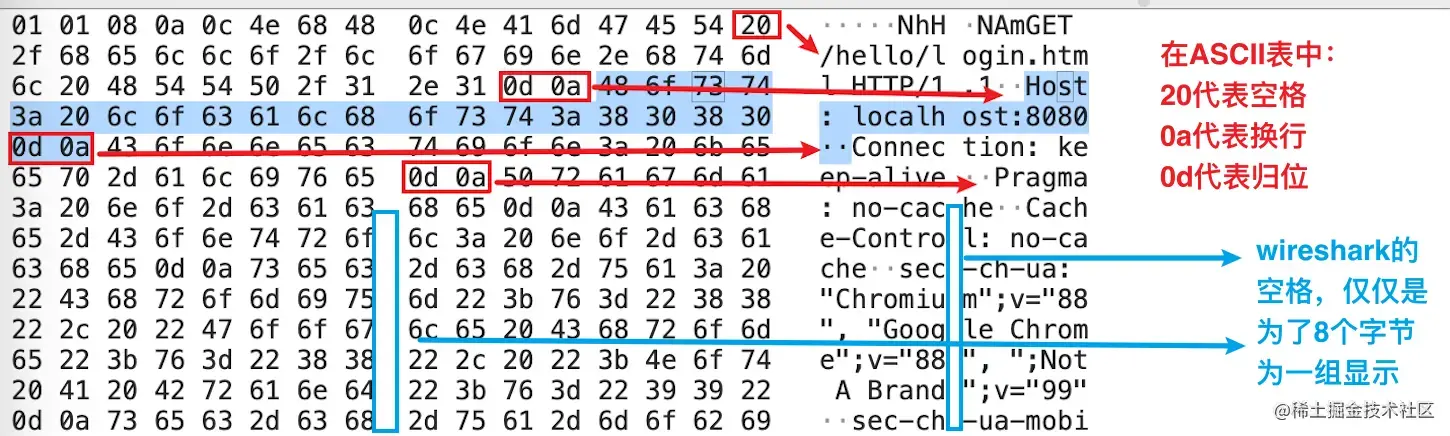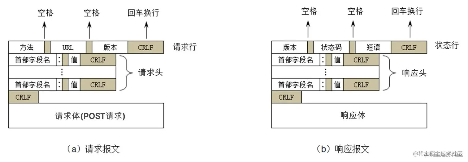 start-line内部包含了空格,所以在报文格式中没有看到换行符CRLF。