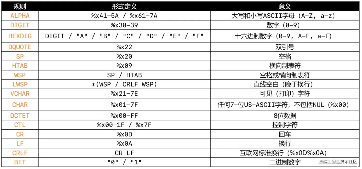 // SP = Space(空格),DIGIT代表数字,具体可参考上面的ABNF核心规则